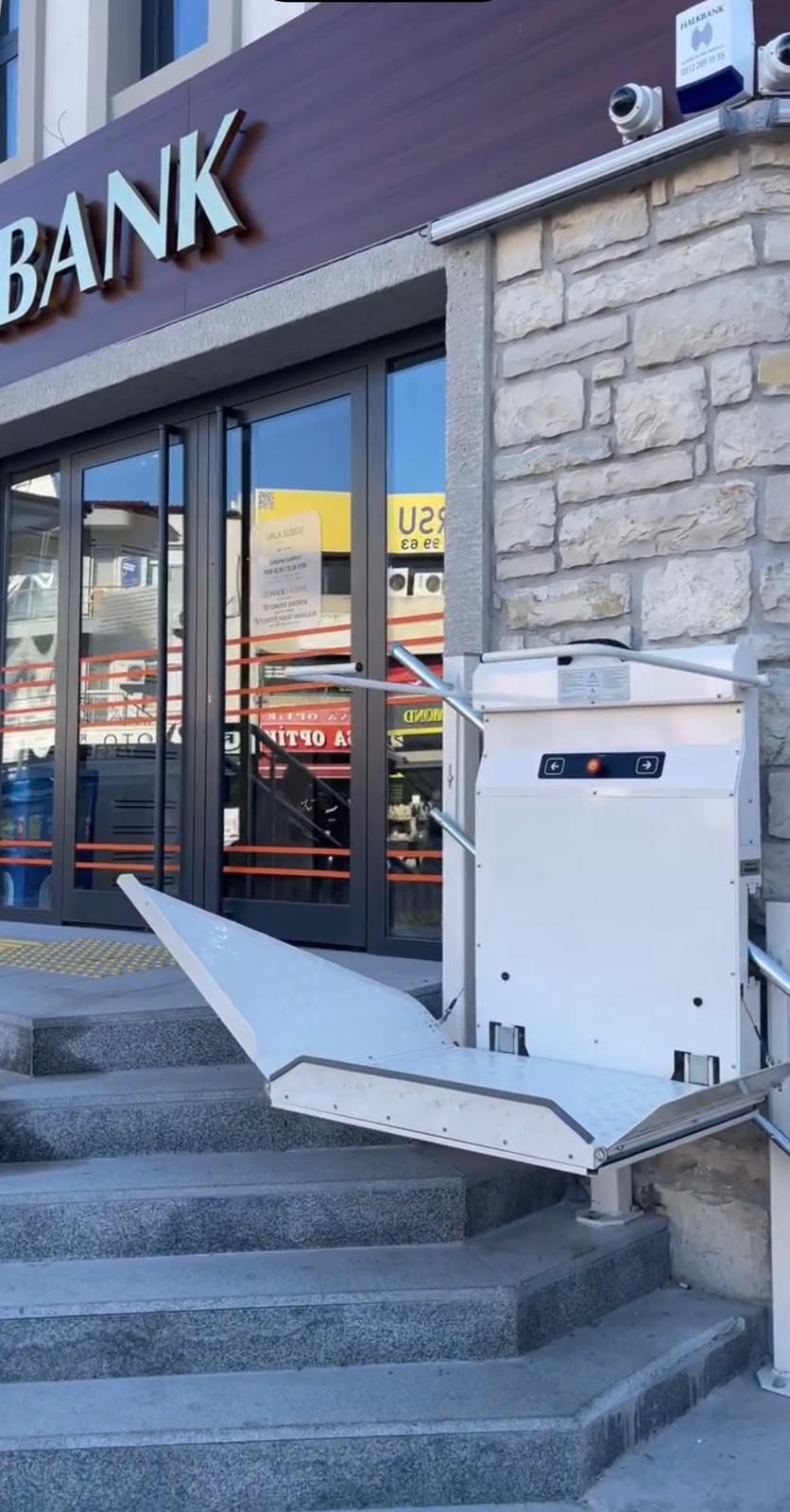 Die Plattform faltet sich automatisch auf, öffnet sich und bewegt sich per Knopfdruck.